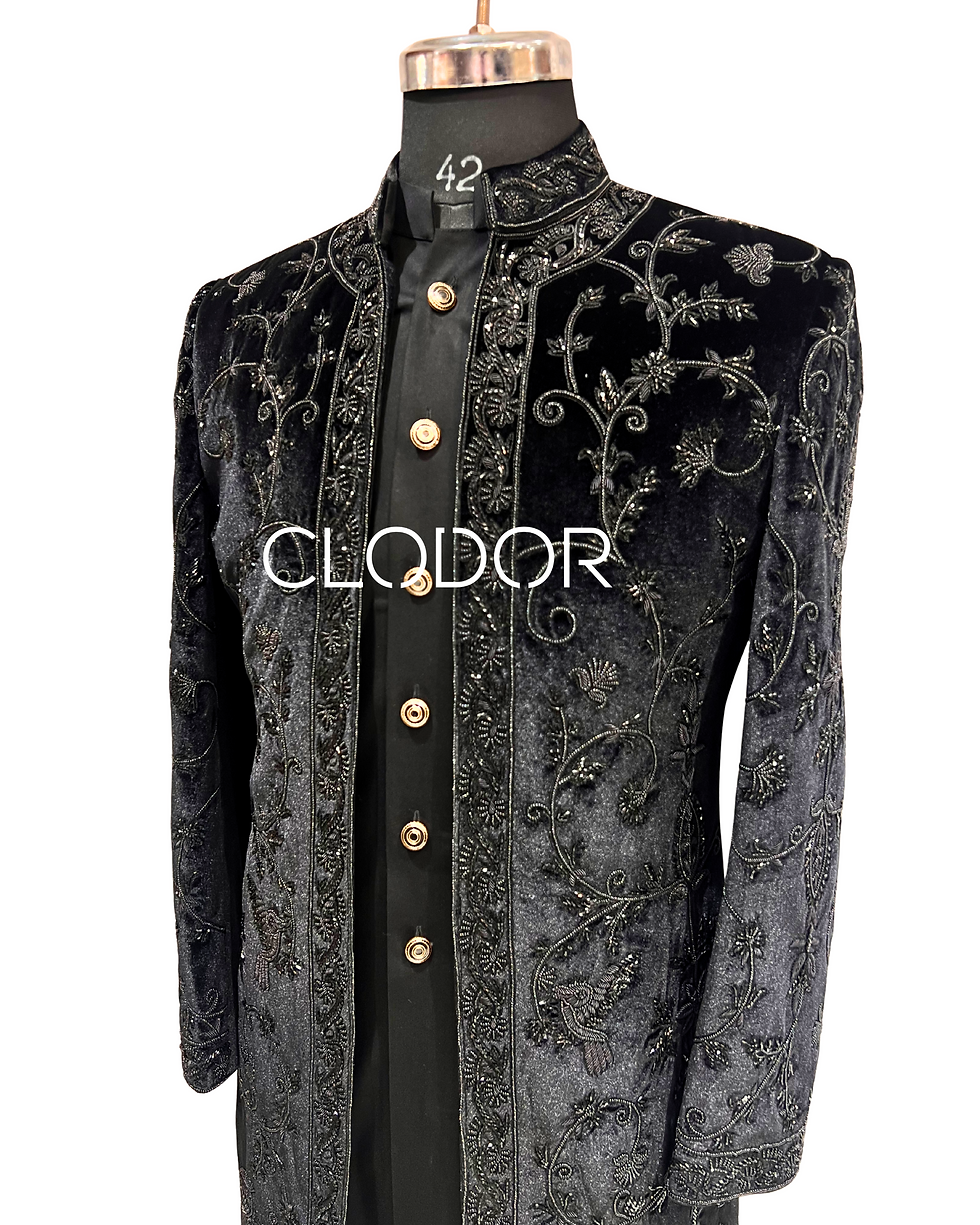BLUE MICRO VELVET HANDWORK INDOWESTERN